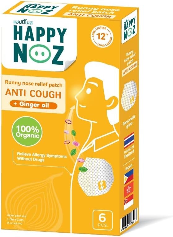 ملصقات Happy Noz Anti-Cough (مضاد للسعال) هي عبارة عن لصقات عضوية لتخفيف السعال وسيلان الأنف، مصممة لتخفيف أعراض الحساسية ونزلات البرد دون الحاجة إلى أدوية.